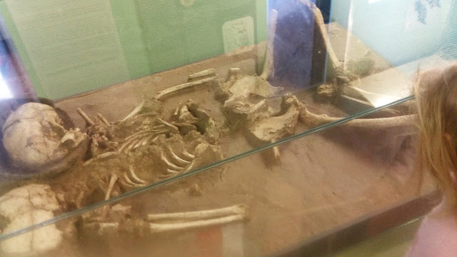 Dórikámnak megmutattam pár dolgot, amit az ősemberek használtak. Talán a pattintott kőszerszámok voltak a legérdekesebbek, mert el sem tudta képzelni, hogy hogyan lehetett egy kődarabbal lenyesni egy vadállat bundáját, de megcsodált egy lyukacsos agyagkorsót is, ami szerintem valami szita-féle használati tárgy lehetett anno. Még egy előkerült csontvázat is megfigyelt, amivel kapcsolatban meg kellett mutatnom, hogy melyik része micsoda, mert a "szétszóródott" csontokból nem tudta megállapítani, hogy melyik a feje, melyik a lába és hasonlók.
